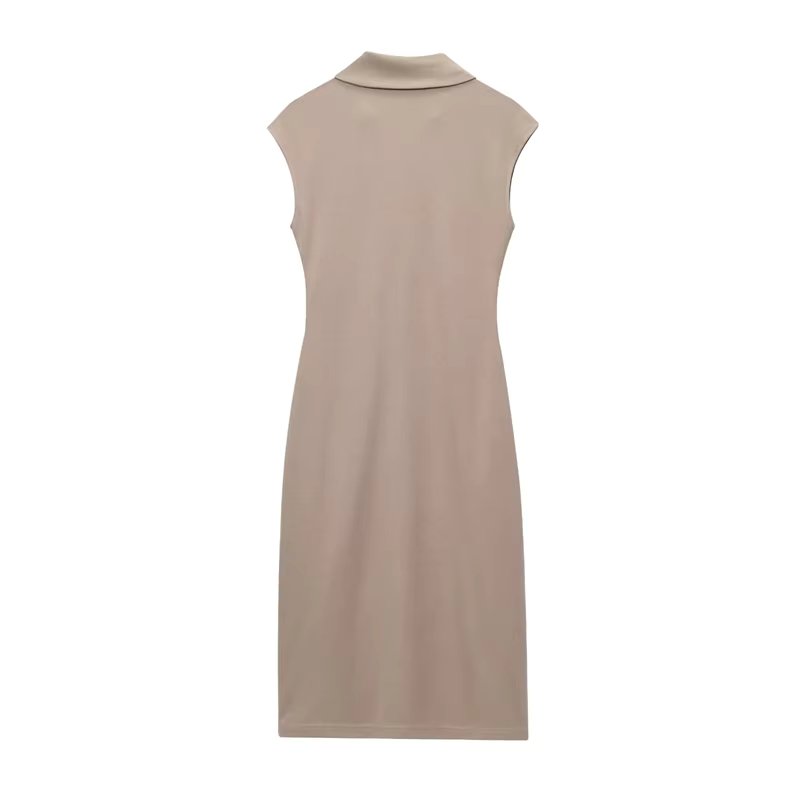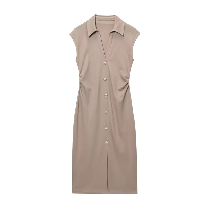 Vestido Camiseiro de Verão Slim Fit – Sofisticação Moderna com Botões Dourados