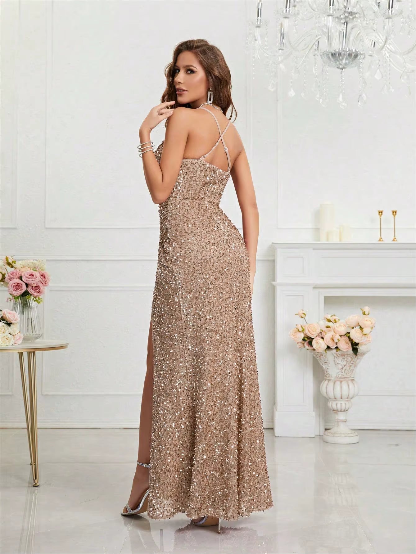 Com um caimento feminino e envolvente, este vestido é ideal para festas de noite, eventos glamorosos, celebrações especiais e ocasiões onde o brilho é protagonista. Uma peça que combina perfeitamente sensualidade e requinte.