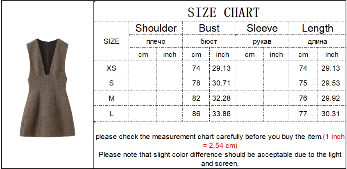 Vestido Mini Elegante sem Mangas com Decote em V Profundo – Sofisticação Sensual para Outono/Inverno
