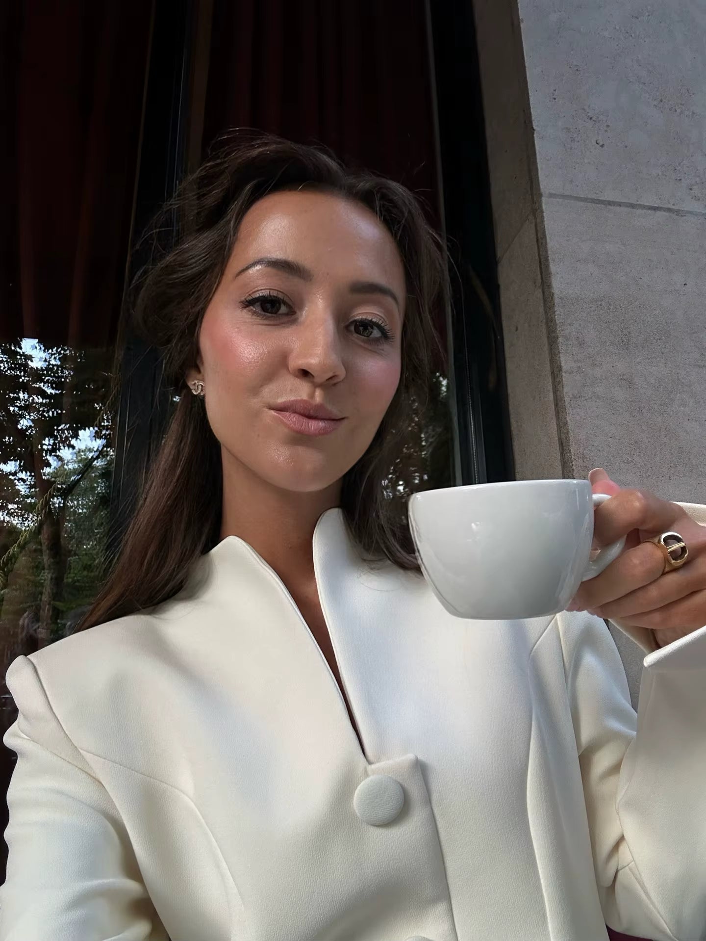 O decote em V com fecho de botões (single-breasted) acrescenta um toque refinado e alonga visualmente a silhueta, enquanto as mangas compridas conferem elegância e versatilidade, tornando-o perfeito para diferentes estações. O corte em linha A proporciona um caimento fluido e favorecedor, realçando a feminilidade com subtileza.